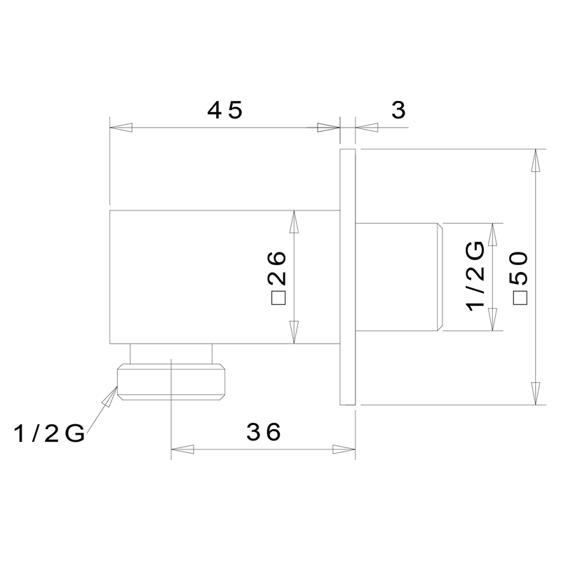 SAPHO szögletes zuhanycsatlakozó 1/2", króm
