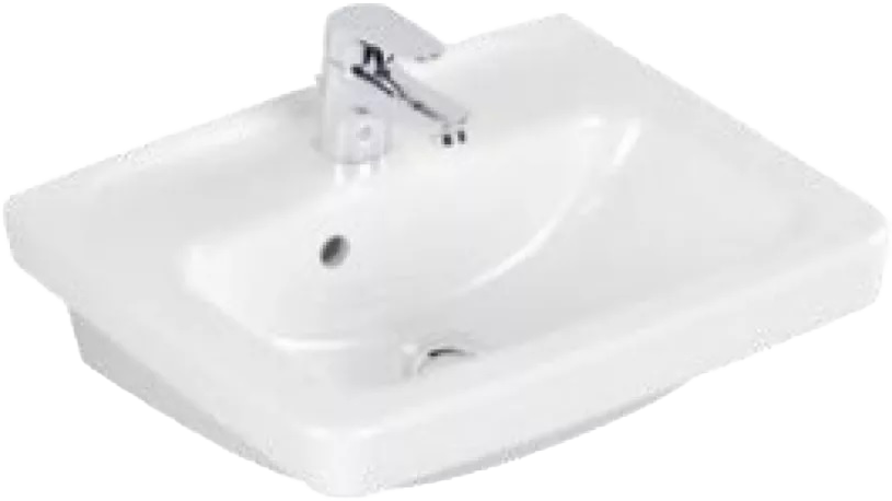 Szögletes forma, lekerekitett élekkel,túlfolyóval ellátva.