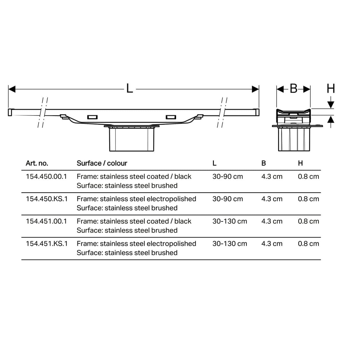 Geberit Cleanline20 zuhanyfolyóka 30-130 cm hosszú, besüllyesztett,