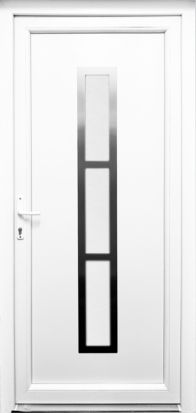 Inox1 - 3 üveges 98x208 műanyag,fehér bejárati ajtó, jobbos