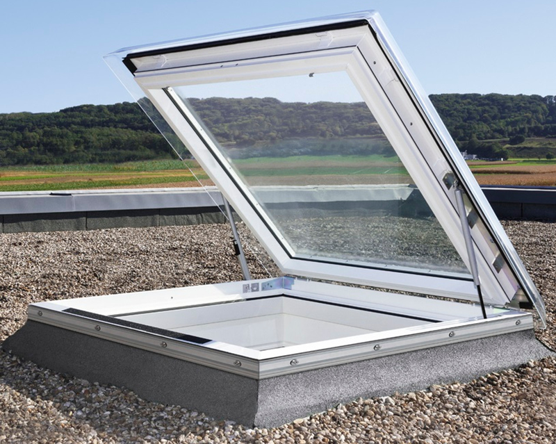 Könnyű és egyszerű kijutás a tetőre. Az ablakszárny kézzel nyitható, mérettől függően 987 vagy 1187 mm-nyire. A zárt állapotban áthatatlan gázrugók a nyitott szárnyat fixen tartják.