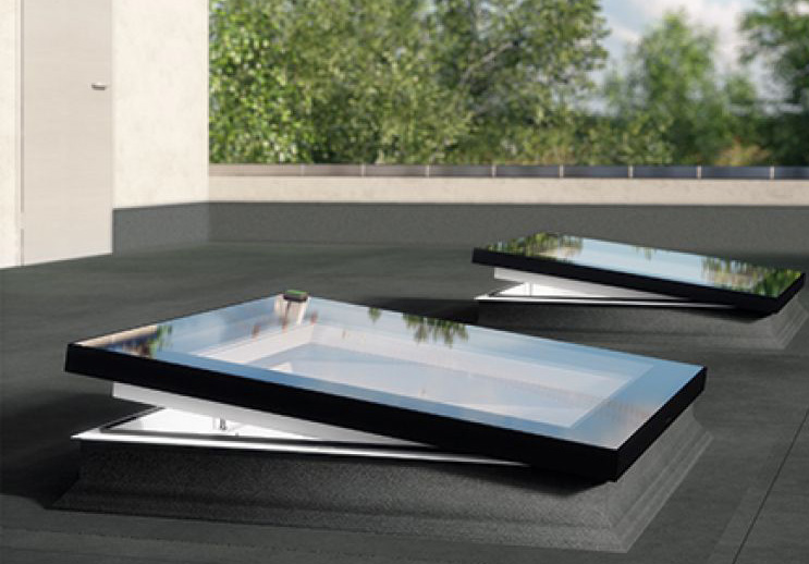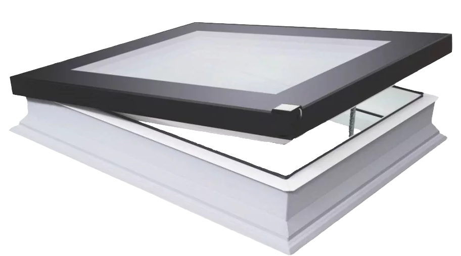 Az F típusú, sík felülvilágító ablak keskeny, modern kinézetű, elegáns megjelenésű termék, kiváló hőszigetelési paraméterekkel. A keret szerkezete azonos a kupolás felülvilágító ablakéval, a fő különbség a modern gyártási technológiának köszönhetően az esztétikus és innovatív üvegezésben rejlik.