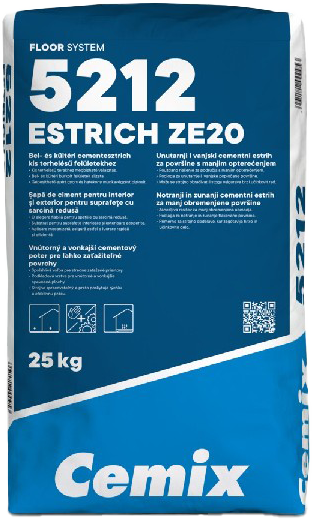 A ZE20 cementesztich kis terhelésű felületekhez alkalmas,önálló aljzatok készítésére úsztatott esztrichként, vagy az alapfelülettel közvetlenül érintkező (kontakt) esztrichként. Alkalmazható kül- és beltérben egyaránt, padlófűtésnél is. Megfelelő burkolattal ellátva nagyobb mechanikai igénybevételnek kitett helyeken is alkalmazható, pl.