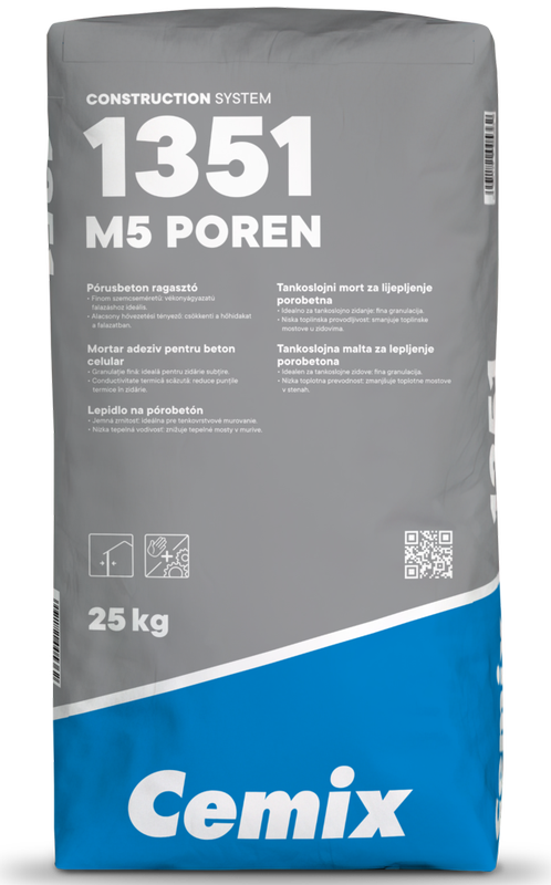 01_5860041.png Cemix M5 Poren vékonyágyazatú pórusbeton ragasztó 25kg
