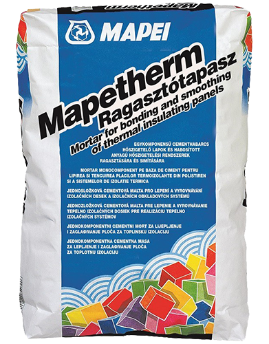 A Mapetherm Ragasztótapasz habosított polisztirol, extrudált poliészter, habosított poliuretán, kőzetgyapot, parafa, stb. hőszigetelő táblák ragasztására és simítására használható, közvetlenül a vakolt, betonrészekből vagy beton falazóblokkokból készült falak illetve mennyezetek kül- vagy beltéri felületeire történő ragasztáskor.