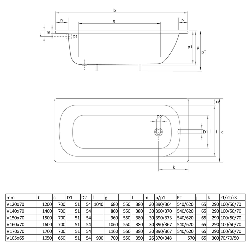 Sapho lemezkád 120x70cm, láb nélkül, fehér