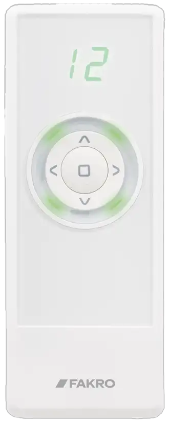 A FAKRO ZRH12 távvezérlő egy fejlett vezérlő, amely lehetővé teszi az összes Z-Wave eszköz konfigurálását és működését, külön-külön vagy csoportosan, az ergonómikus joystick segítségével. A 12 távvezérlő csoport egyikéhez legfeljebb 12 eszköz rendelhető. Az aktív csoportok száma látható a LED kijelzőn.