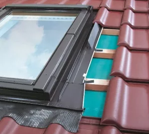 A burkolókeret részei: 1 felső elem hőszigetelő anyaggal. 2 alsó elem hőszigetelő anyaggal és rugalmas aluköpennyel. 3 oldalsó elemek hőszigetelő anyaggal és speciális szigetelő szivacs ékekkel. 4 felső páraelvezető csatorna. 5 rögzítő fémlemez. 6 cserépmegtámasztó profil.