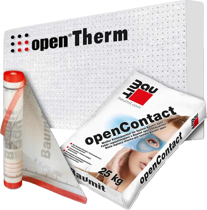 A Baumit openTherm homlokzati hőszigetelő lemezek fehér színű, teljes keresztmetszetükben perforált, különlegesen jó páraáteresztő képességű polisztirol lemezek (µ érték=10), speciálisan a Baumit open klímahomlokzathoz kifejlesztve. Kifejezetten ajánlott alkalmazásuk vegyes- vagy ismeretlen összetételű falazatok utólagos hőszigetelésére. Új építések esetén hatékonyan segítik az építési nedvesség mielőbbi távozását a falazatból.