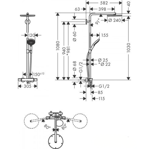 Hansgrohe Raindance Select S 240 1jet termosztátos zuhanyrendszer, matt fekete
