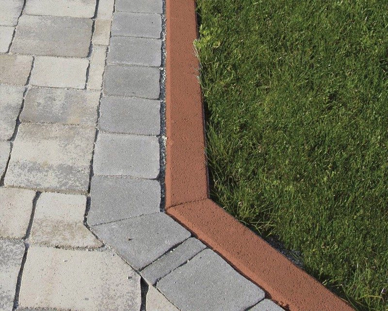 Barna színű, klasszikus stílusú kerti szegély kerti utak, járdák, kisebb autóforgalmú felületek megtámasztására, határolására, lezárására, kvarc kopóréteggel.