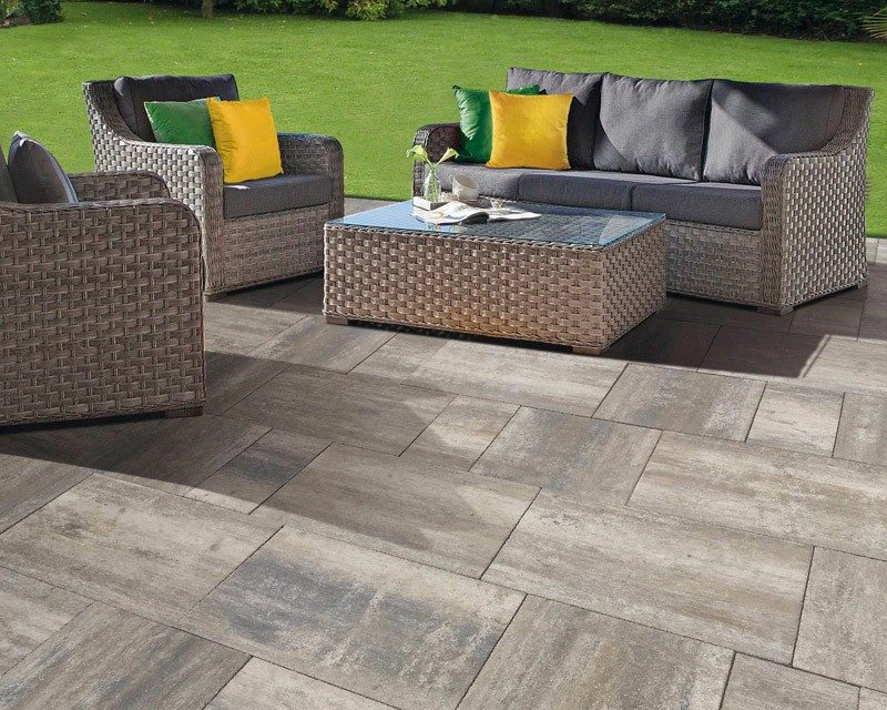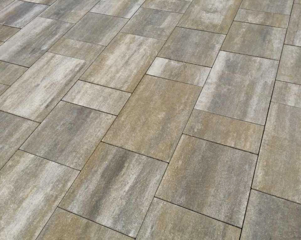 Grafit-terra színű, letisztult formavilágú, izgalmasan tagolt, élénk, egyedi hatású melírozott színekben elérhető, kombi térkő, a modern stílus kedvelőinek.