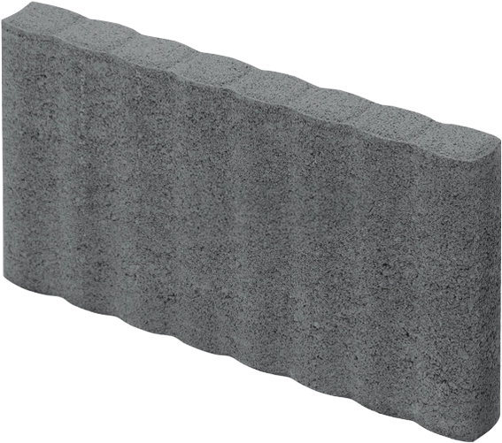 Térkő burkolatok oldalhatárolására, eltérő felületek egymástól való elválasztására. Kerti lépcsők homloklapjaként is felhasználható. Egyenes tetejű.