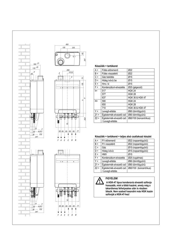 Fűtési előremenő/visszatérő csatlakozás: 22 mm