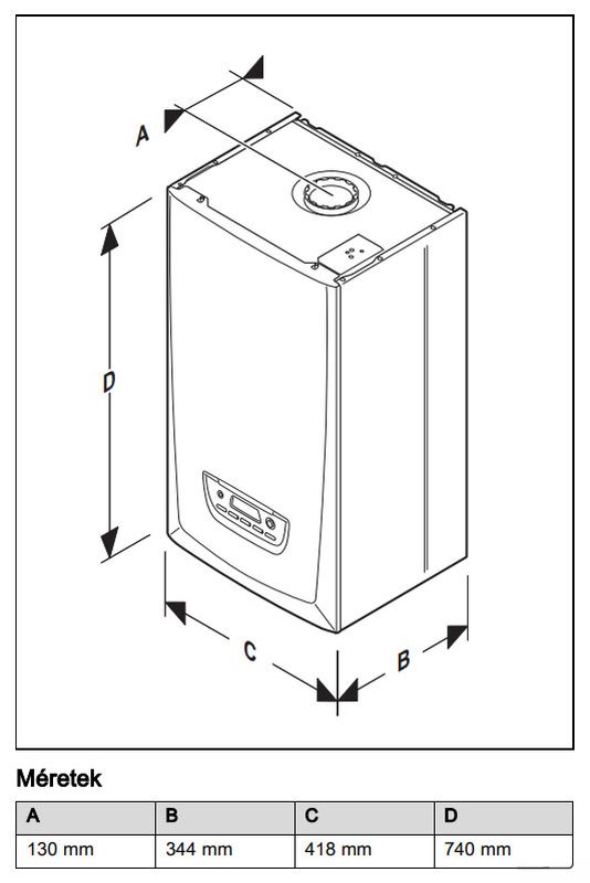 Fűtési előremenő/visszatérő csatlakozás: 22 mm
