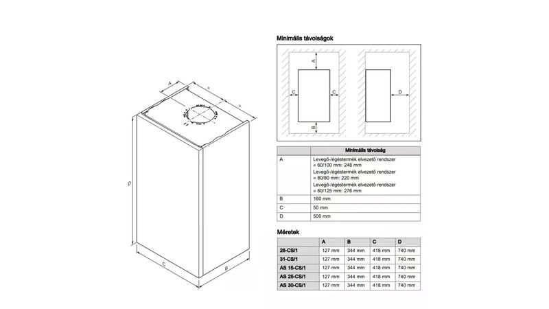 Égéstermék kivezetés: 60/10080/12580/80 mm