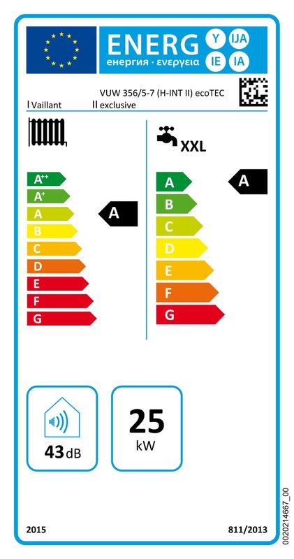 Szezonális helyiségfűtési hatásfok: 94 %