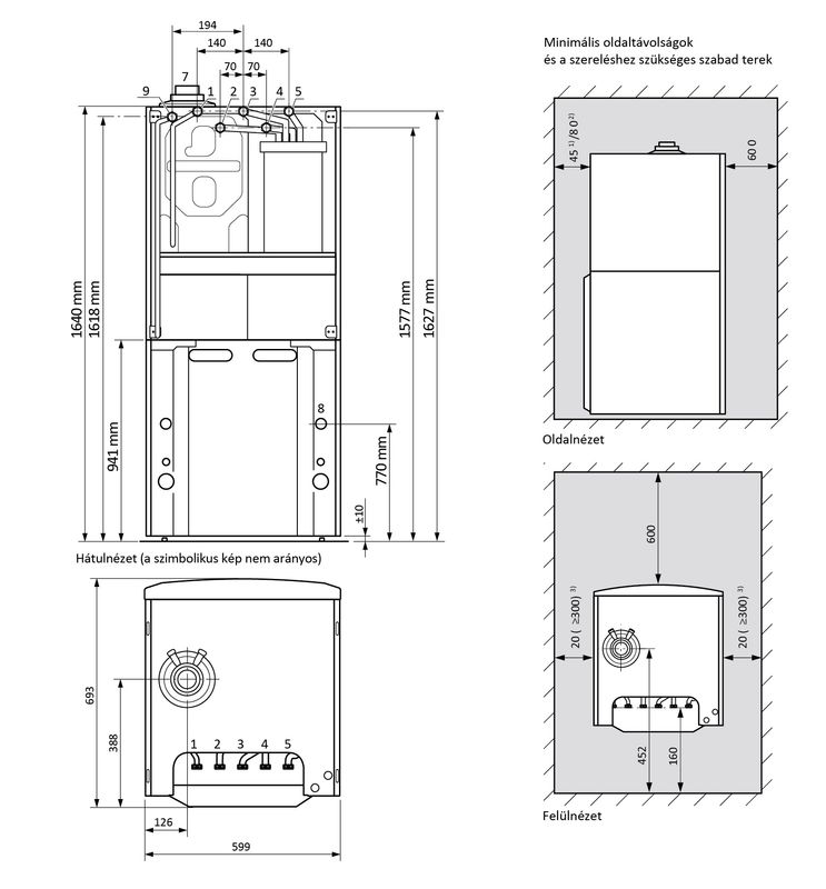 Fűtési előremenő/visszatérő csatlakozás: 1"