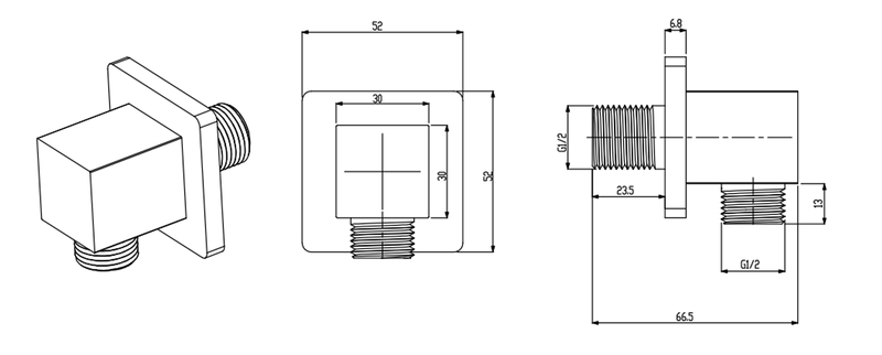 Sapho szögletes falicsatlakozó zuhanyhoz,króm