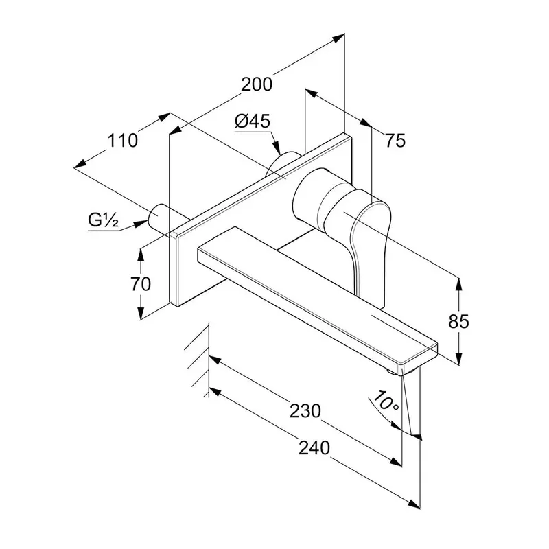 KLUDI-ZENTA SL falsík alatti, kétlyukas, fali mosdócsap látható rész