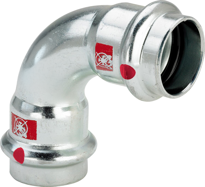 Áramlásoptimalizált présidomrendszer ötvözetlen, 1.0308 anyagszámú acélból készült présidomokkal. Kívül galvanikusan horganyzott (kék kromátozott). A présidomok a tömítőelem védelme érdekében hengeres csőbevezető toldattal vannak ellátva. A présidomok d64,0 mérettől nemesacél vágógyűrűvel rendelkeznek a kötés mechanikus terhelhetőségének biztosításához. A csővégek védelem céljából dugókkal vannak lezárva. A préselés a tömítőelem előtt és mögött is megtörténik (kettős préselés). Felszállóvezetékek és szinti leágazások vakolat elé és alá történő szereléséhez alkalmas.