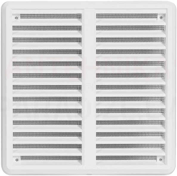 Haco szögletes, fehér, műanyag szellőzőrács rovarhálóval 150x150 mm