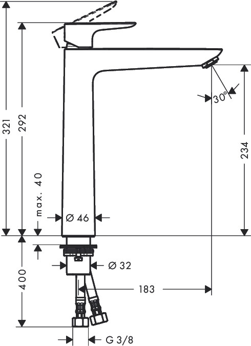 Hansgrohe Talis E 240 egykaros, magasított mosdó csaptelep, lefolyógarnitúra nélkül