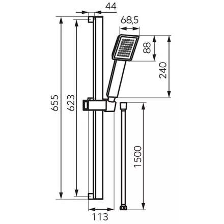 Szett tartalma: fém zuhanyrúd hossza 65,5 cm