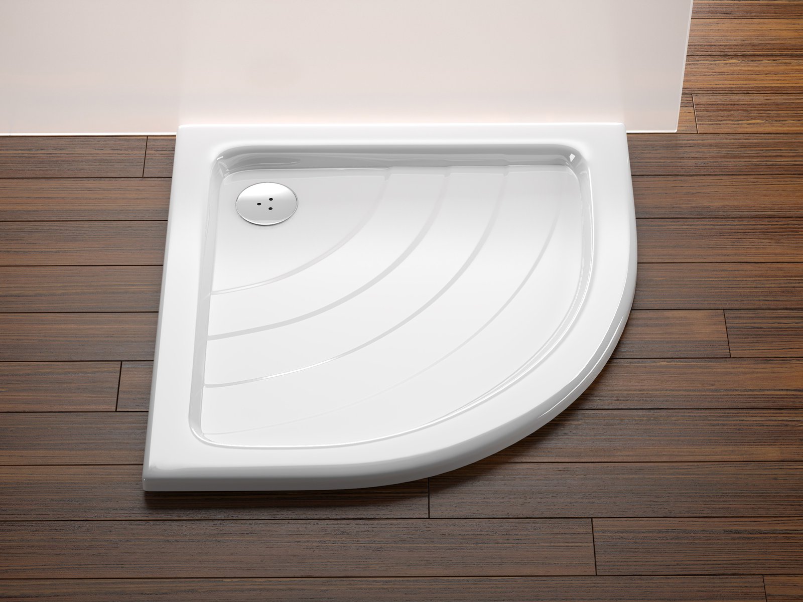 A Ronda LA negyedkör alakú zuhanytálca lábakra vagy beépítésre szánt. Akrilból készült, fehér színben.
