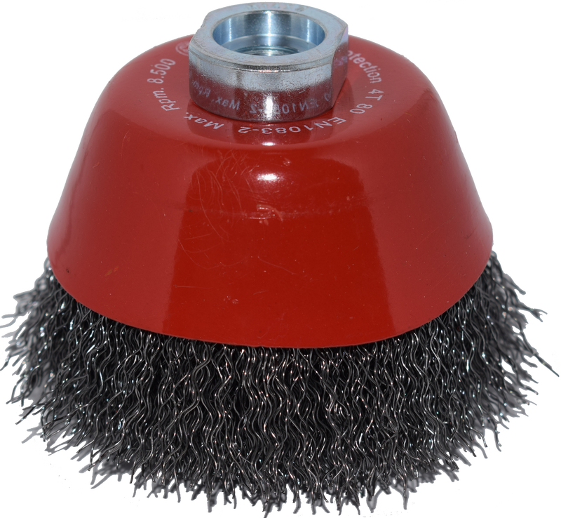 Fazékkefe hullámos dróttal: Ideális nagy felületek tisztításához, sorjátlanításához.
