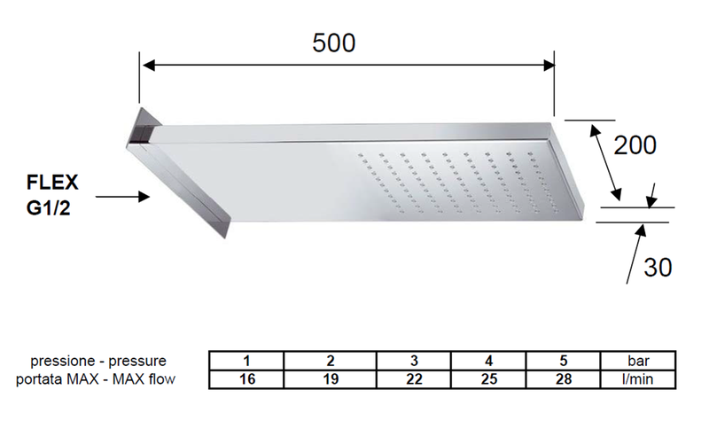 Sapho téglalap fali fejzuhany 500x200x30 mm, polírozott inox