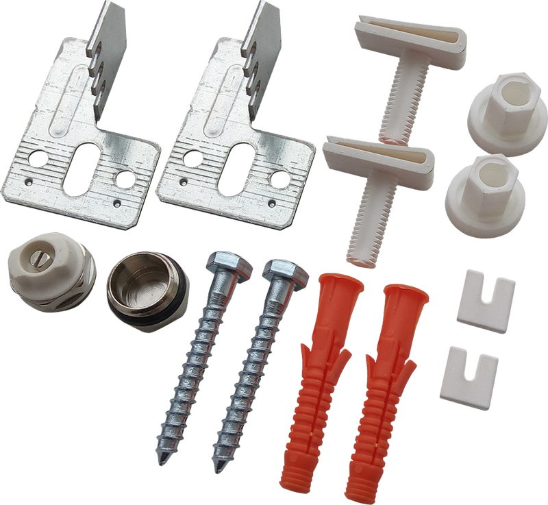 Univerzális szögvas felerősítő szett vakolt és nyers falhoz, ami 2 db állítható, hangvédőbetétes szögvasfülből, 2 db távtartóból, 2 db tipliből és hatlapfejű csavarból, + 1 végdugóból és 1 légtelenítőből áll. Beállítási lehetőségek: a faltól a fűtőtest füléig 10, 30, 43, 53 valamint 63 mm.