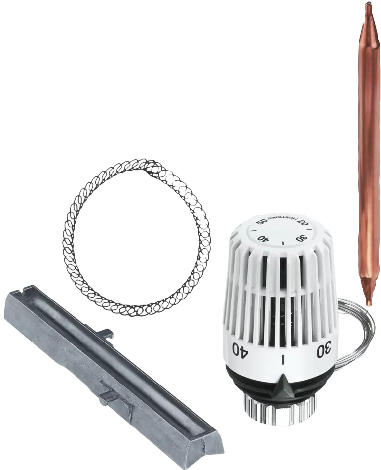 Heimeier "K" termosztatikus szelepfej 20-50 °C, hővezető aljzattal, rögzítő rugóval M30x1,5
