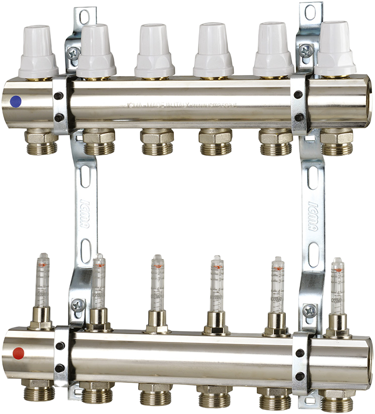 Icma padlófűtés osztó-gyűjtő áramlásmérővel 1"-3/4" 9 körös