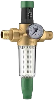 A szűrővel ellátott nyomáscsökkentő szelep megakadályozza a szennyeződés behatolását a csőrendszerbe, és egyúttal megvédi a berendezést a túlnyomástól (csökkenti a bemeneti nyomást a munkaszintre). A kimeneti nyomás állítható és nem változik a beömlő nyomás változásával.