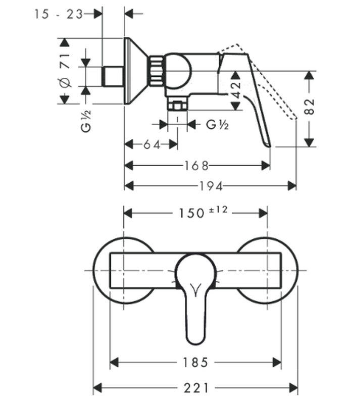 kézizuhany átfolyási mennyisége 3 bar nyomás esetén: 15 l/perc