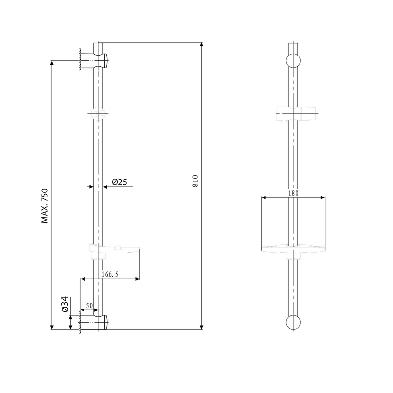 Sapho zuhanyrúd mozgatható tartóval, 810mm, króm