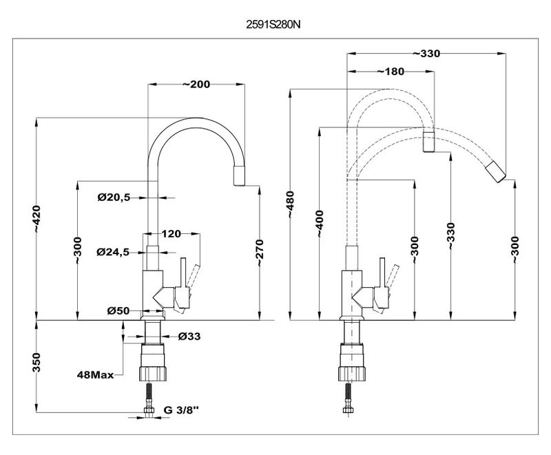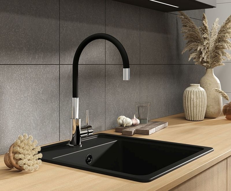 Matt fekete rugalmas kifolyócső - a kifolyócső alakja változtatható,