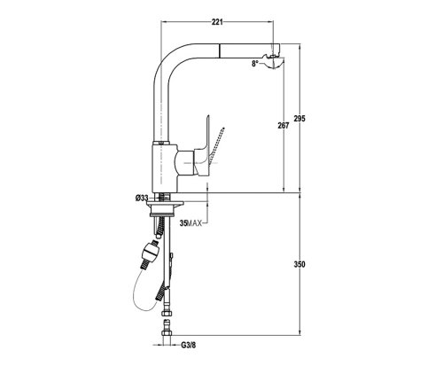 Kihúzható vízkőmentes egyfunkciós zuhanyfejjel