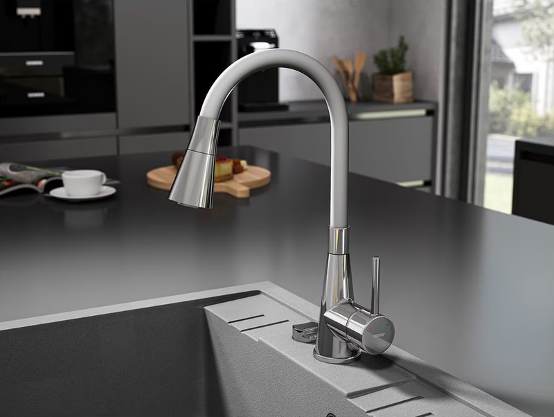 Ferro Zumba II. mosogató csaptelep álló ezüst flexibilis csővel