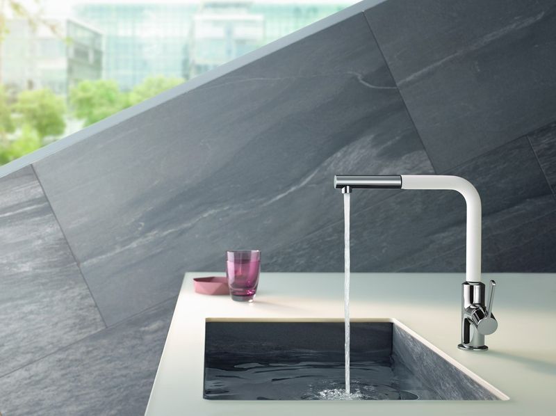 Kludi L-INE S egykaros mosogató csaptelep, kihúzható fejjel, matt fehér/króm