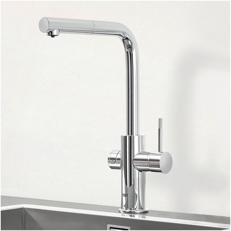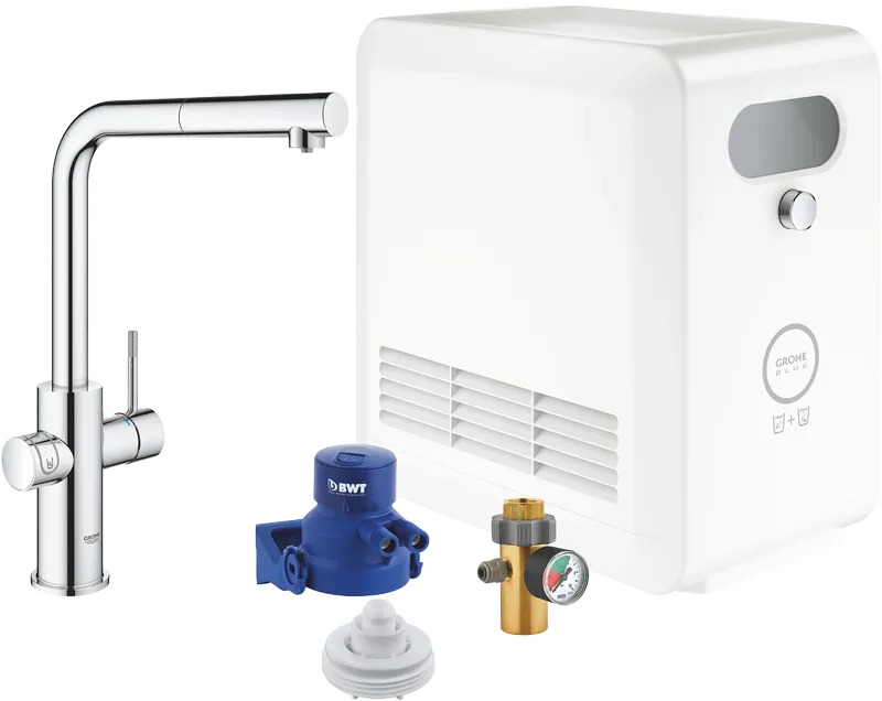 Grohe Blue Professional egykaros konyhai csaptelep szűrő funkcióval, L-kifolyós készlet, króm