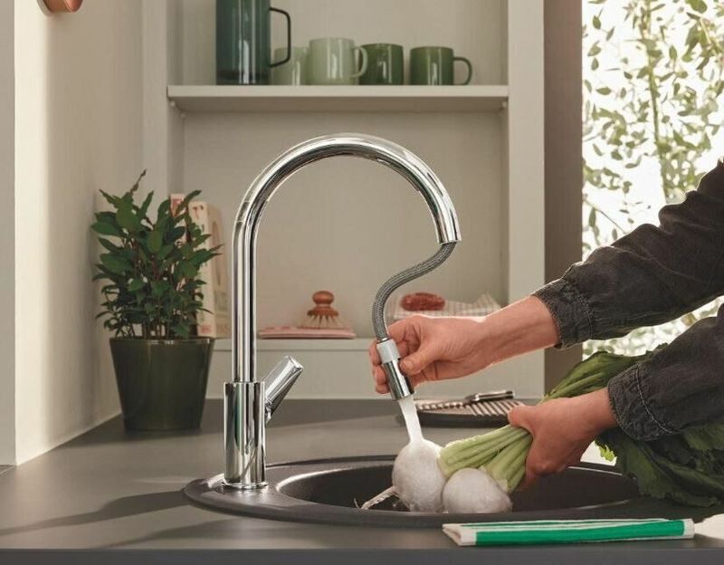 Grohe BauEdge kihúzható perlátoros egykaros mosogatócsap, króm