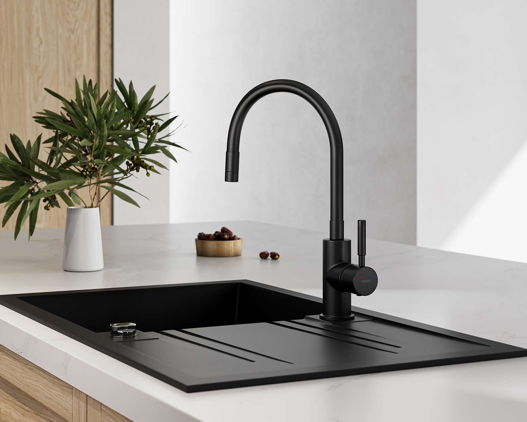 Ferro Zumba Nero konyhai csaptelep flexibilis kifolyócsővel, matt fekete