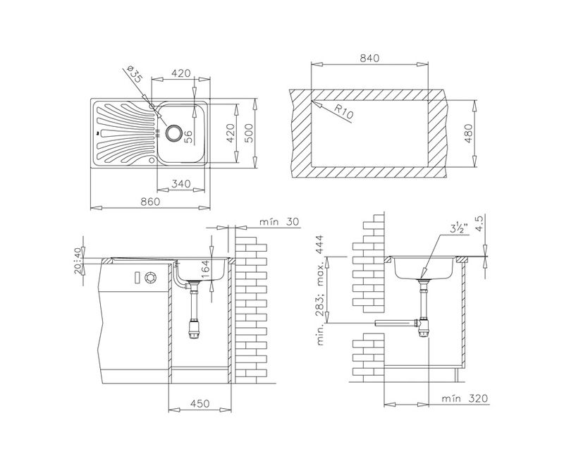 Mofém Trend 1B 1D mosogatótálca 1 medencés+1csepptálcás 860x500