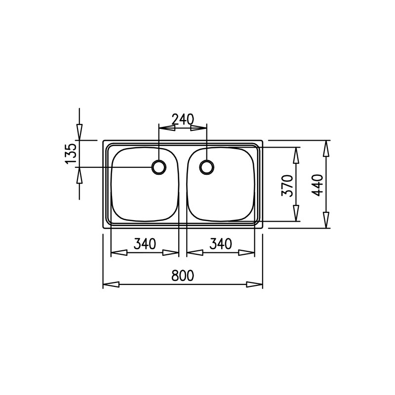 Méret: 800x440 mm, medence méretek: 340x370x150 mm.