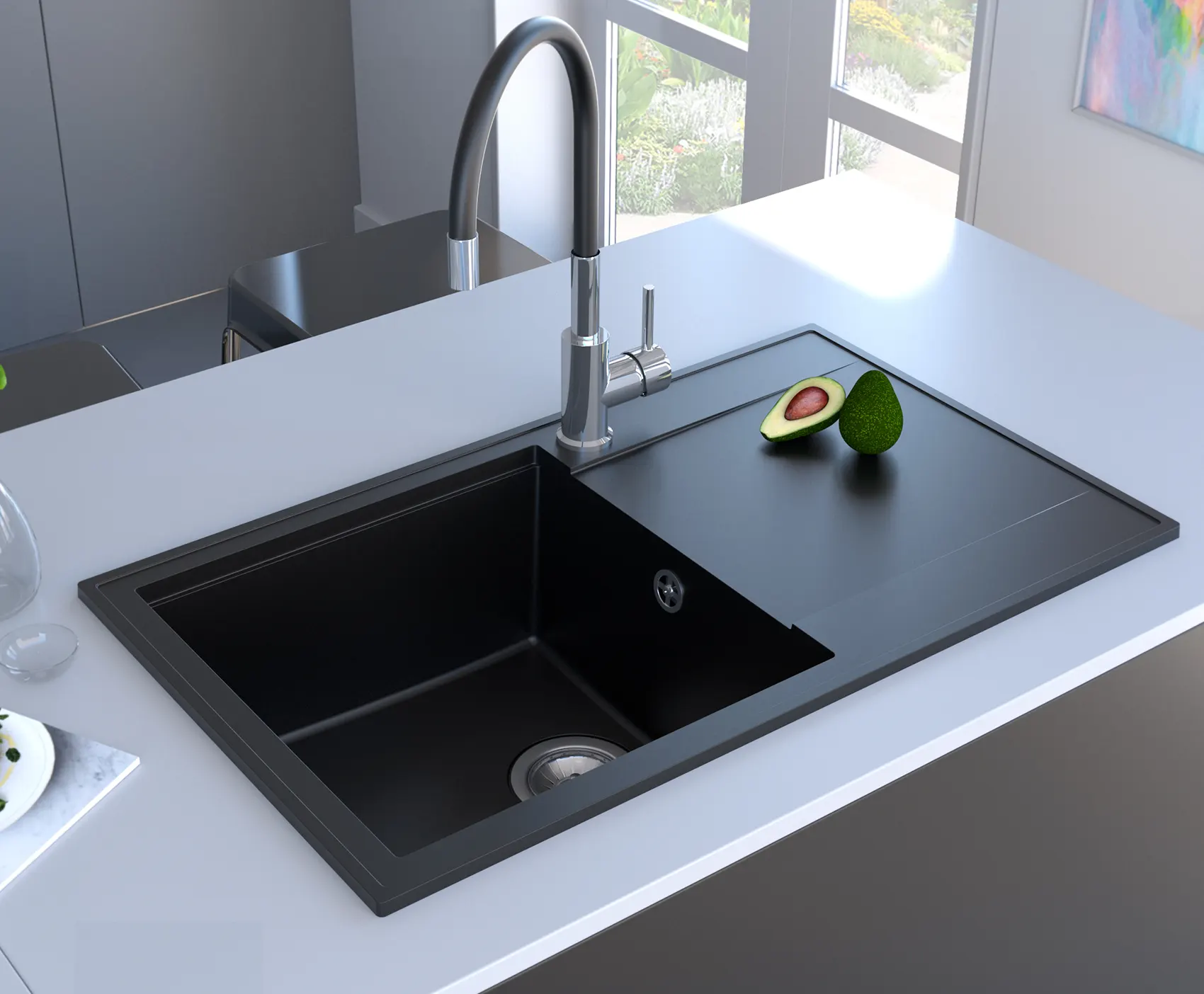 1 medence, 1 csepptálcás gránit mosogatótálca
