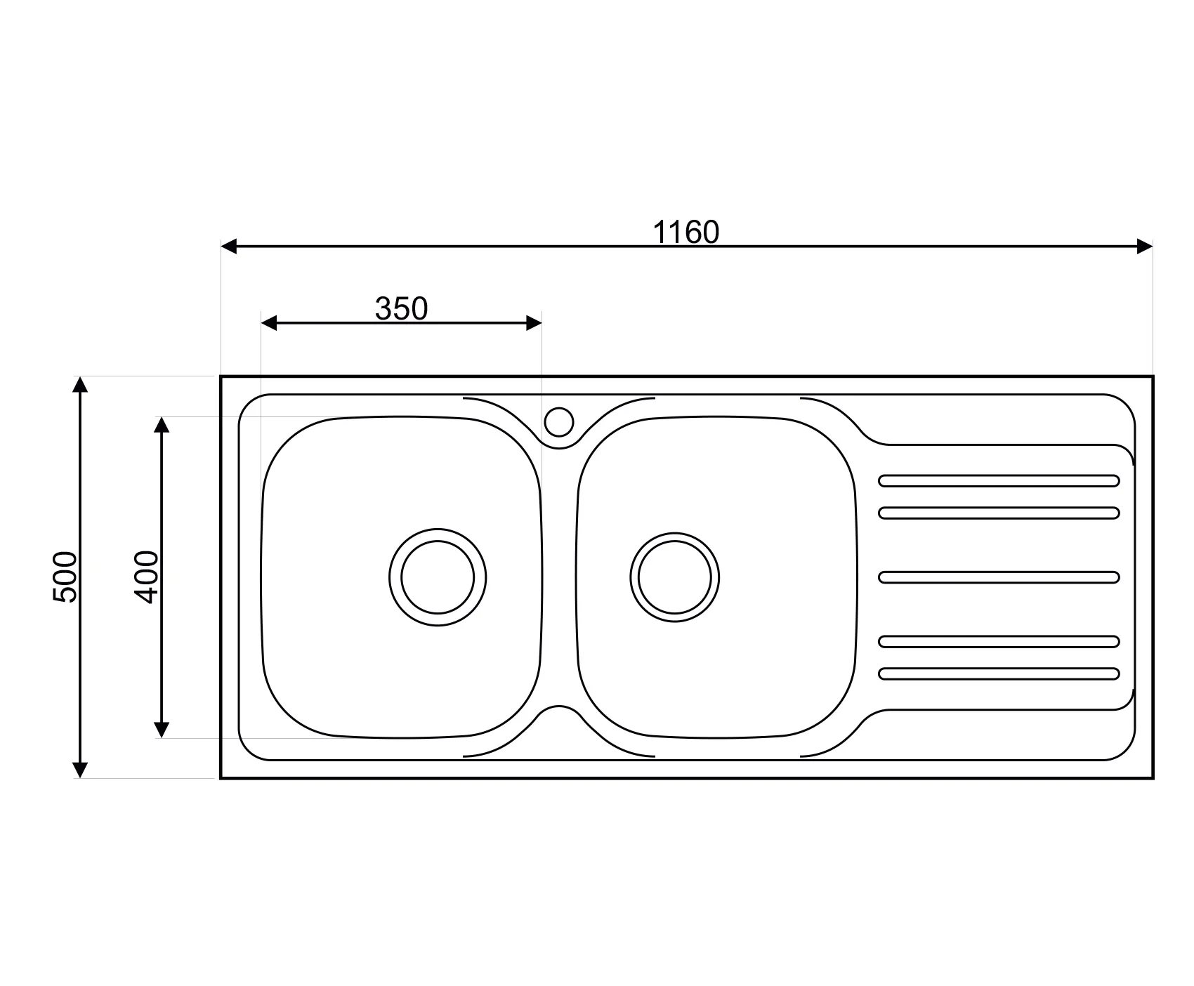 Mofém Infinite 2B1D 2 medencés, csepptálcás mosogatótálca lefolcsócsomaggal 1160x500