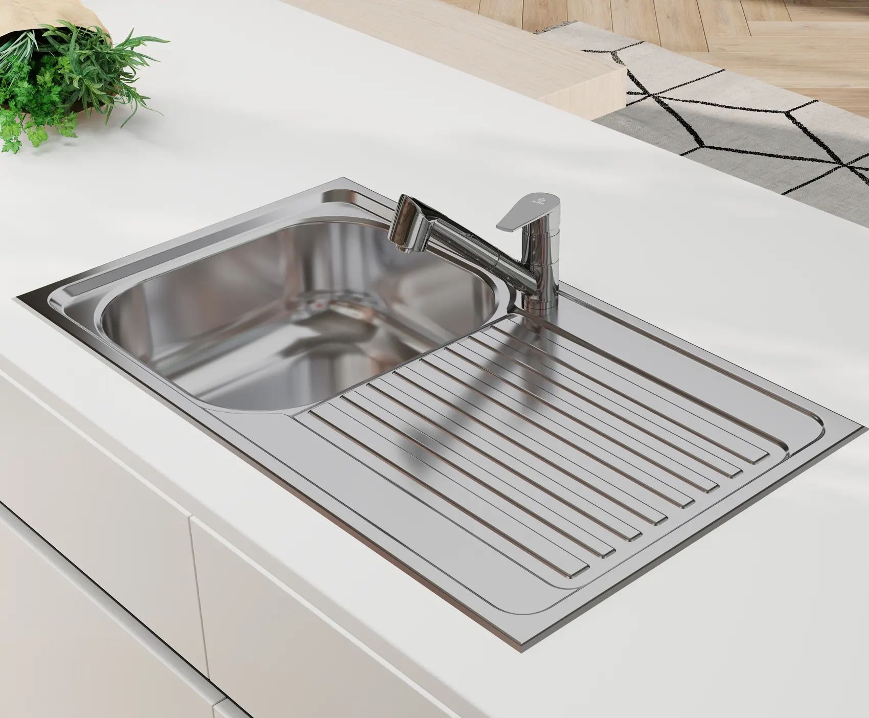 1 medence, 1 csepptálcás rozsdamentes acél mosogatótálca