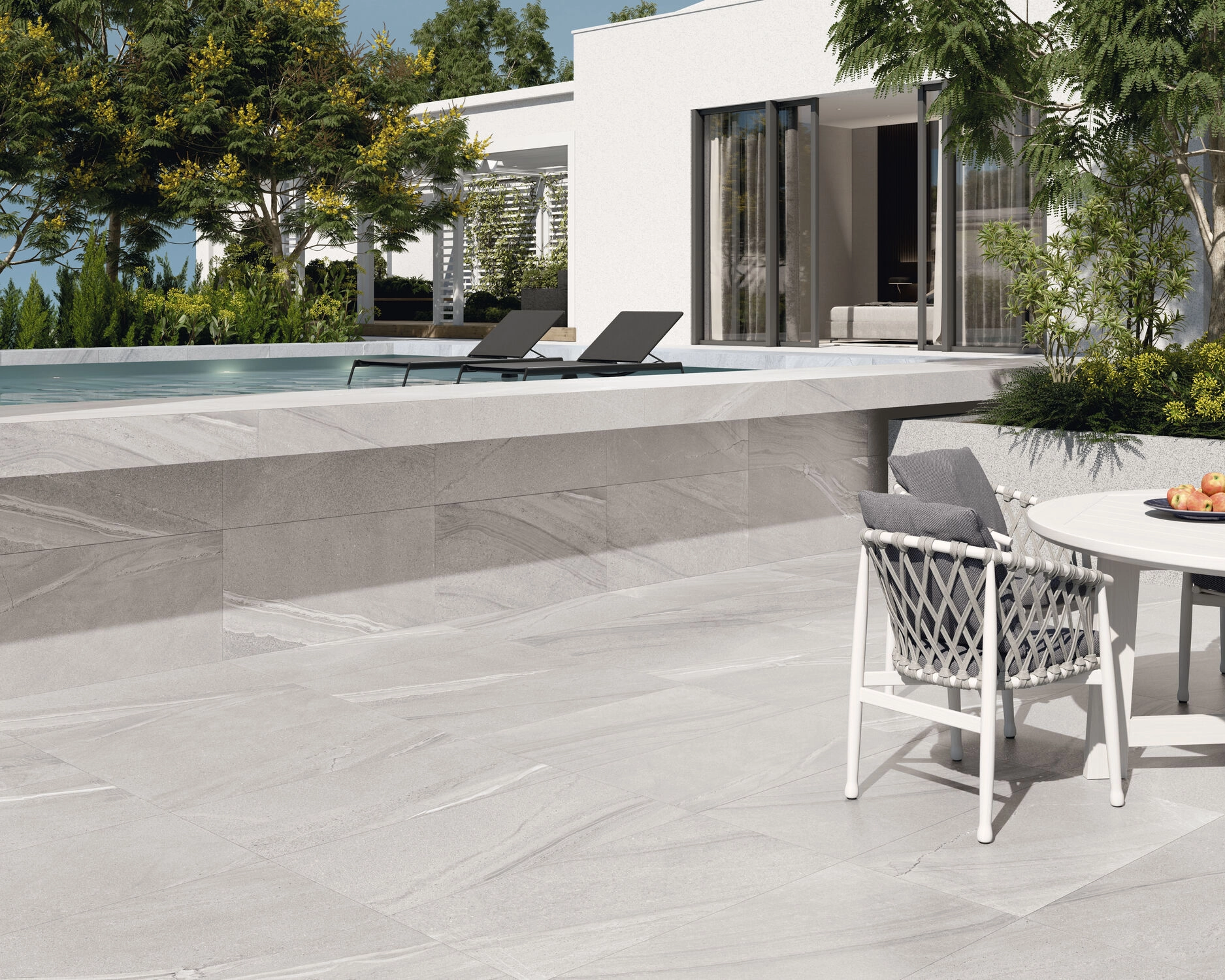Fehér színű matt, rektifikált, fagyálló, gres kültéri és beltéri padlólap. R10-es csúszásmentesség. Falra és padlóra egyaránt alkalmas.